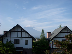 窓から見える富士山。翌朝ようやく見えた