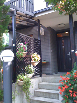 写真を撮れたのはここまで。後は散らかされてしまった。同じ貸し別荘の反対向きのタイプ。(去年の様子はこちら) 玄関前はこんな感じ