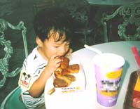 ここで、みっき〜を叩き起こします。寝ぼけまなこでも大好きな焼きおにぎりはもりもり食べています。が、あれだけ大好きなハンバーグは一口かじってあとは「いらない」。どこがお気に召さなかったのでしょうかねぇ。