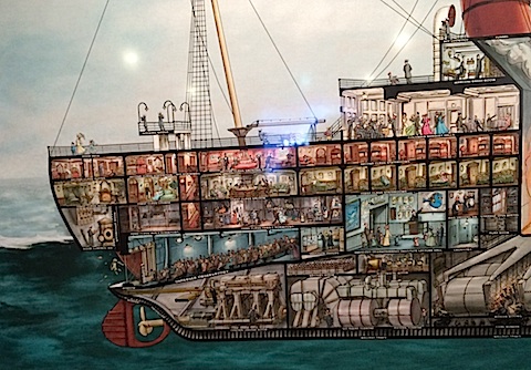 19世紀の豪華客船の最後尾がガラス張りの展望室、という無理な設定はさておき、画面に出てくるカメと観客が実際に会話をするのが凄い。